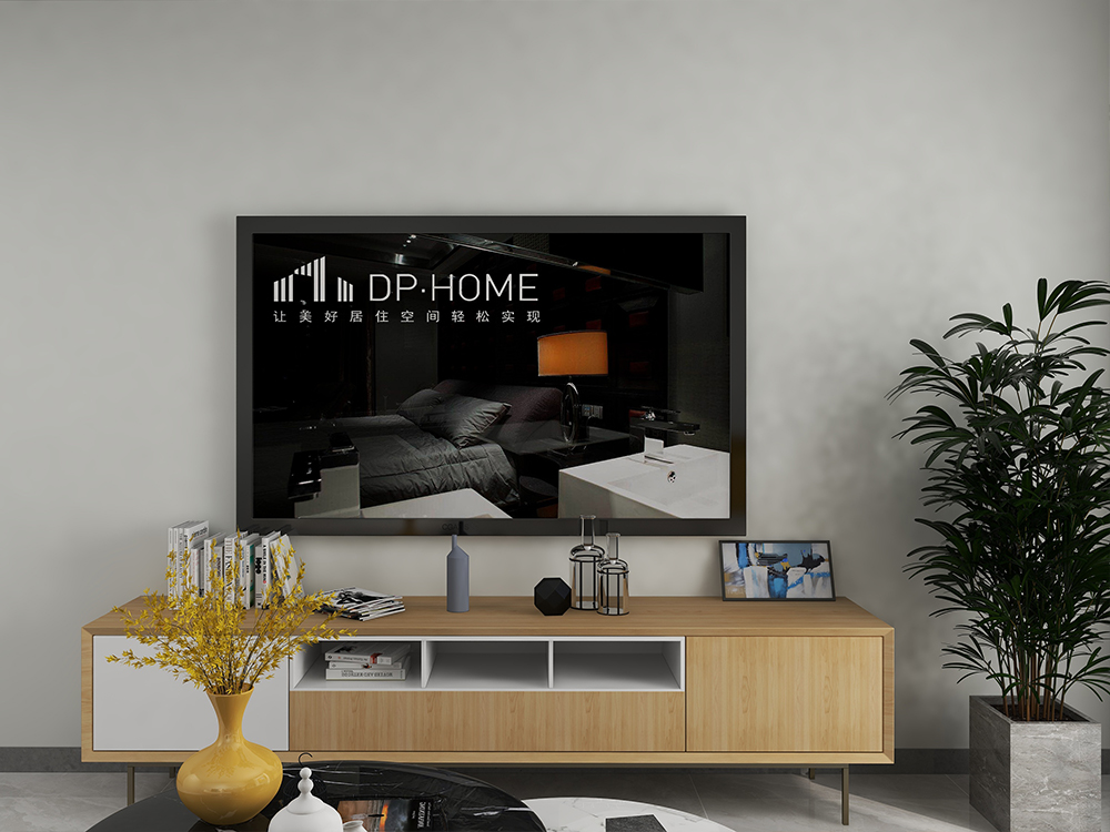 电视墙也秉承了“简单”的章法,灰色墙面、木质电视柜搭配大理石盆栽,材质赋予空间美学。