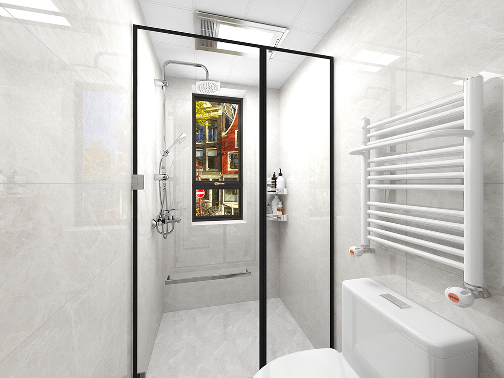 卫生间干湿分区,用黑色极窄框架 透明玻璃隔开,黑白之间,更为精简整洁。 |