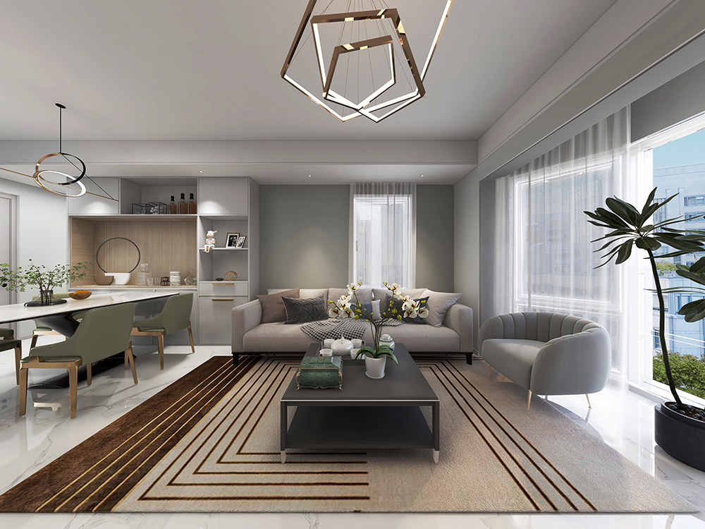 吊顶将视觉空间拉高,灰色为主调,层次之间营造高级内敛的空间氛围。