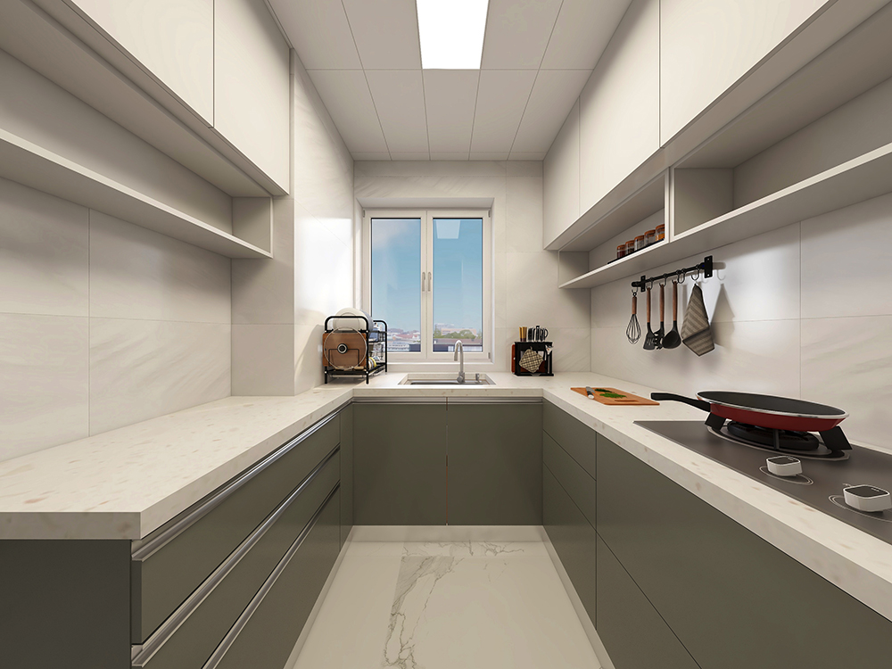 厨房灰白搭配,提高空间质感,整洁有条理。